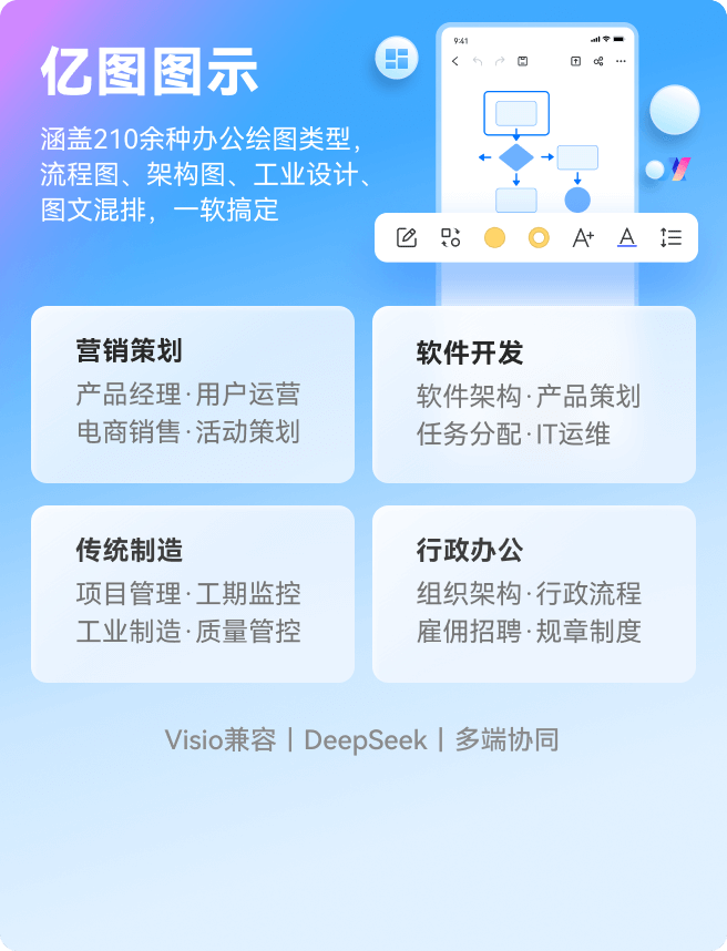 涵蓋210余種辦公繪圖類(lèi)型,流程圖、思維導(dǎo)圖、信息圖、工業(yè)設(shè)計(jì)、圖文混排,一軟搞定